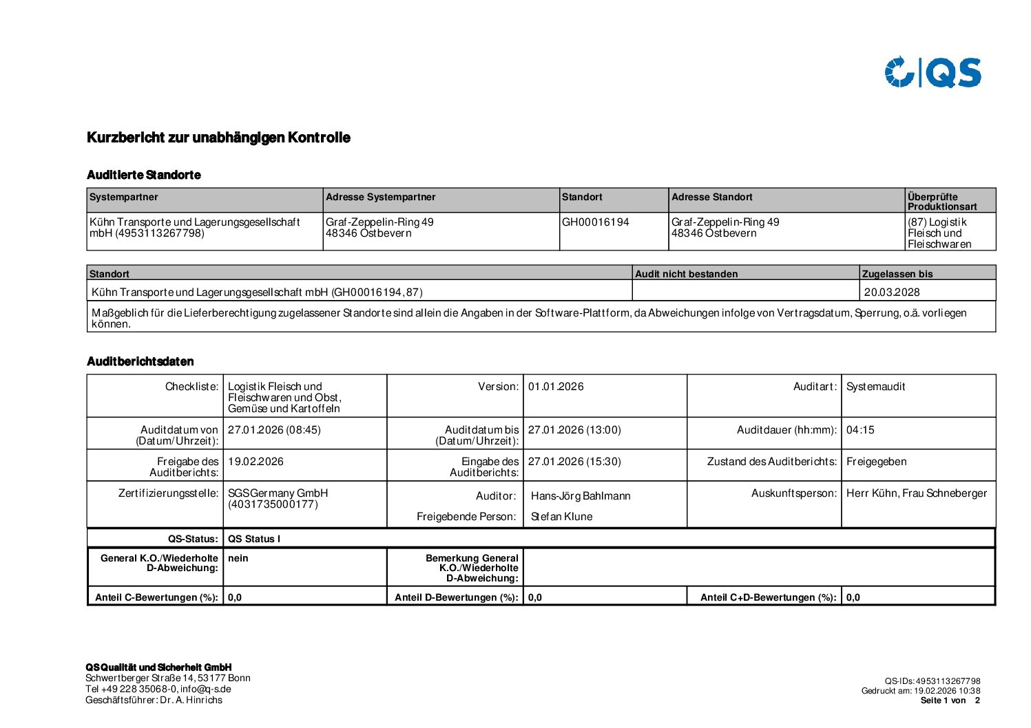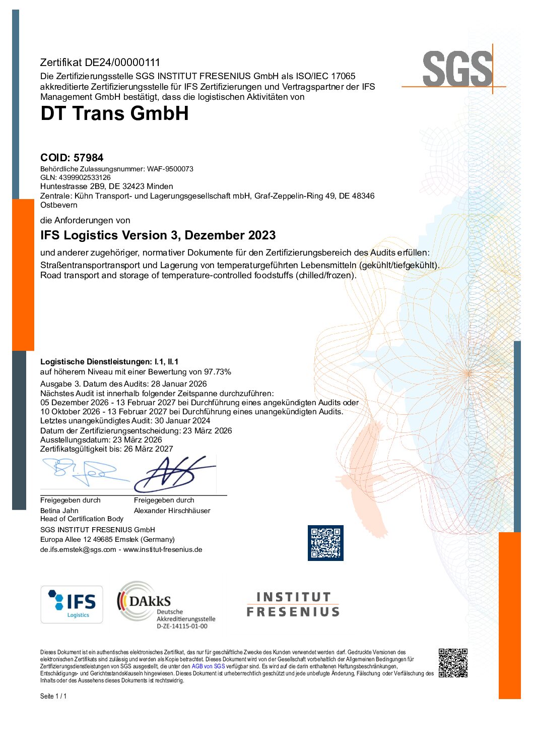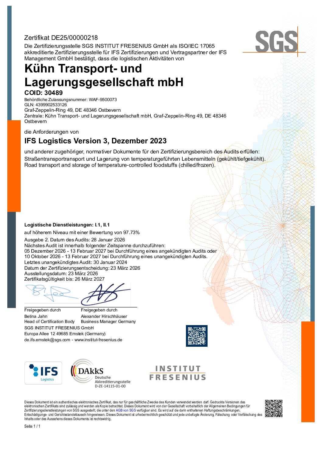 Zertifikat Kühn Transport und Lagerungsgesellschaft mbh